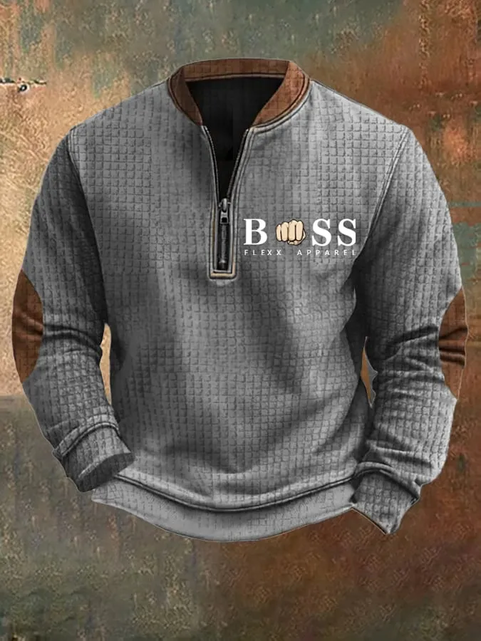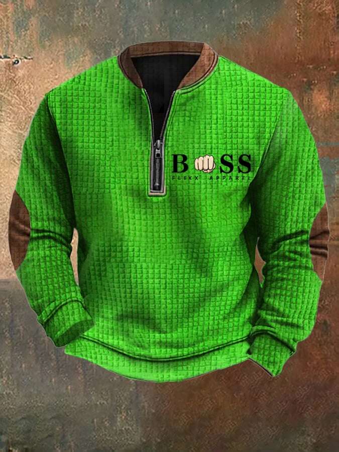 Sweatshirt retro para homem com design de letras estampado com gola com fecho e jacquard quadrado 3393334